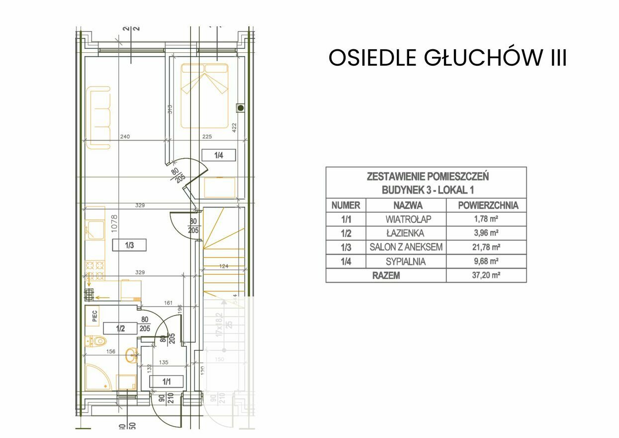 Mieszkanie 41,97 m2 (plus ok. 15m2 poddasze) 2 pokoje
